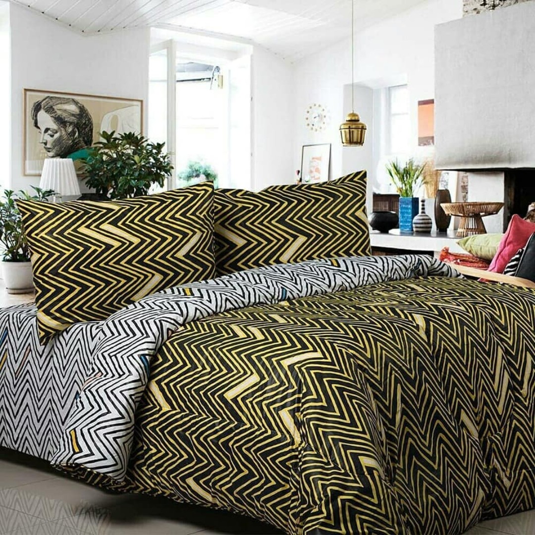 Bedcover set Katun Catra Motif Zikzak hitam putih, Perabotan Rumah di Carousell