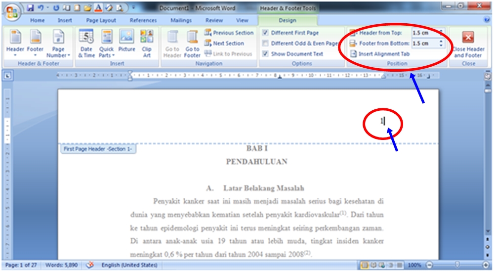 Cara membuat nomor halaman di word untuk skripsi berbeda letak dan format - Panduan Ms Office