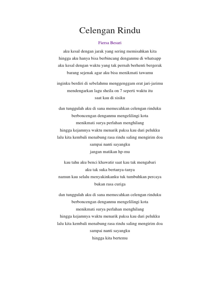 Lirik lagu Indonesia - CELENGAN RINDU- fiersa besari - Wattpad