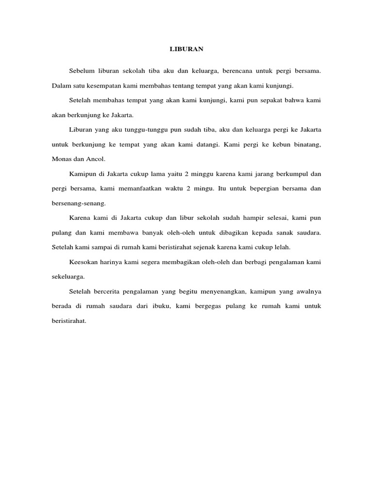 Contoh Cerita Liburan Sekolah Dalam Bahasa Inggris | Leisure | Nature