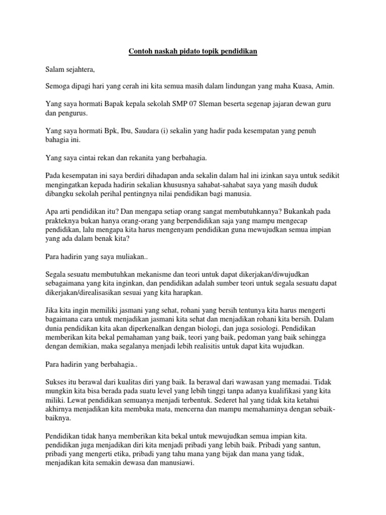 DOC) Contoh Pidato Singkat Pendidikan | indah mokobombang - Academia.edu
