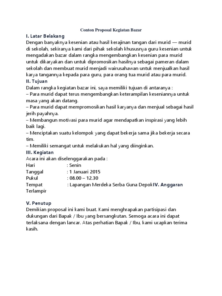 Contoh Proposal Kegiatan Bazar di Sekolah Dan Download File docx Nya - Kumpulan Proposal dan Surat Terlengkap