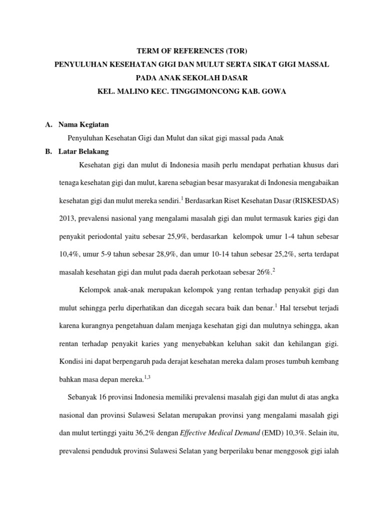 DOC) PROPOSAL PELAYANAN KESEHATAN GIGI DAN MULUT | Tri Nuryana - Academia.edu