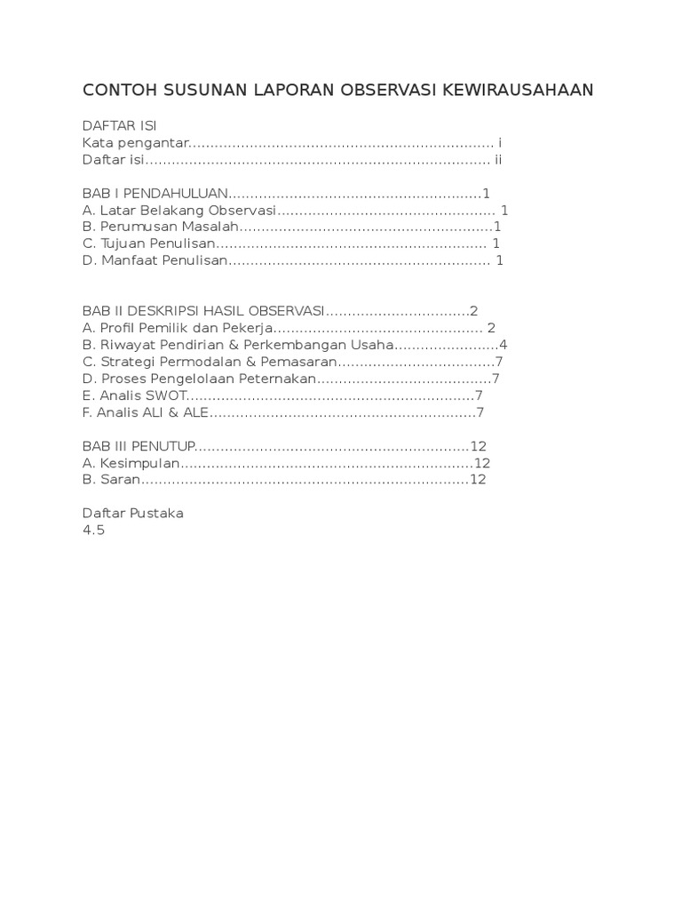 contoh susunan laporan observasi kewirausahaan