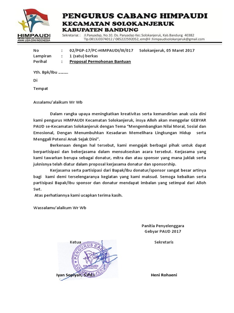 DOC) Proposal Pengajuan Dana BOP PAUD | Mubasyir Nh - Academia.edu