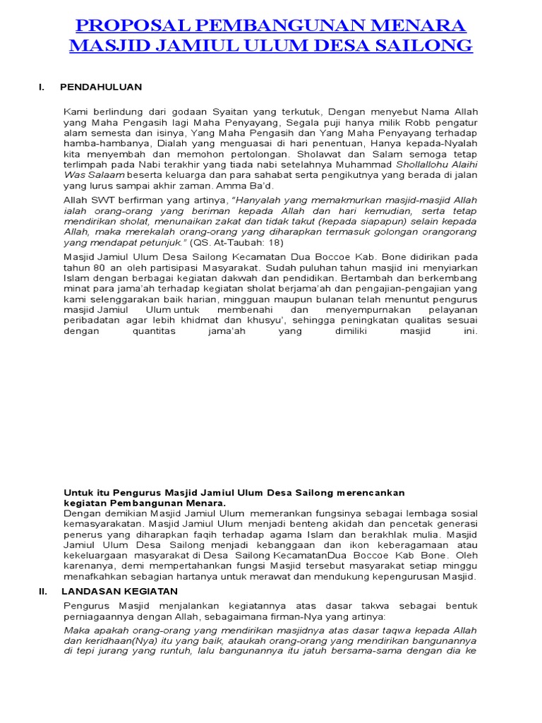 DOC) PROPOSAL PEMBANGUNAN MENARA MASJID JAMIUL ULUM DESA SAILONG | Masjid Assa’adah - Academia.edu