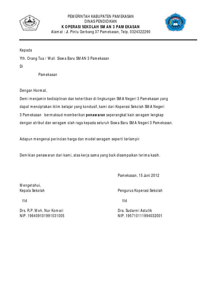 Contoh Surat Penawaran Seragam Sekolah Gawe Cv – Cute766