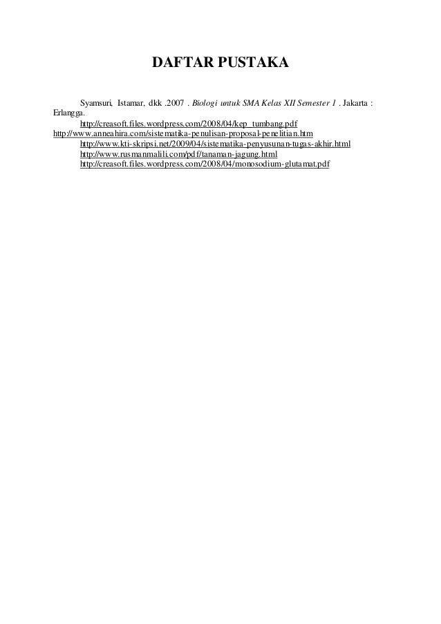 DOC) PROPOSAL PENELITIAN BIOLOGI PENGARUH MSG (MONOSODIUM GLUTAMAT) TERHADAP PERTUMBUHAN TANAMAN JAGUNG | Ridho Satria - Academia.edu