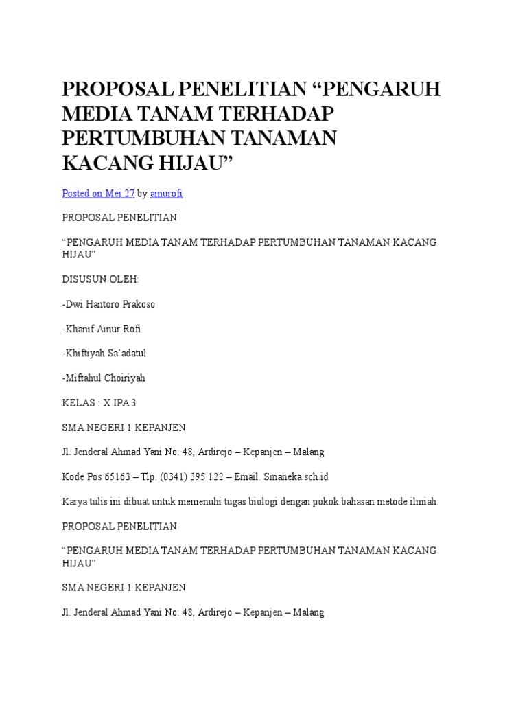Contoh Proposal Penelitian Biologi Tentang Pertumbuhan Tanaman - Berbagi Tanam