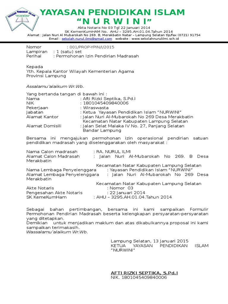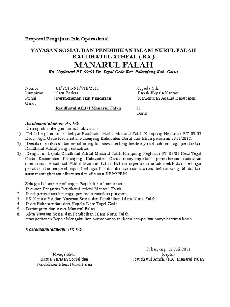 Contoh Proposal Pengajuan Ijin Operasional Ra - Berbagi Contoh Proposal