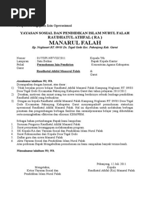 Download Contoh Ijin Operasional Lembaga PAUD Format DOC - PAUD JATENG