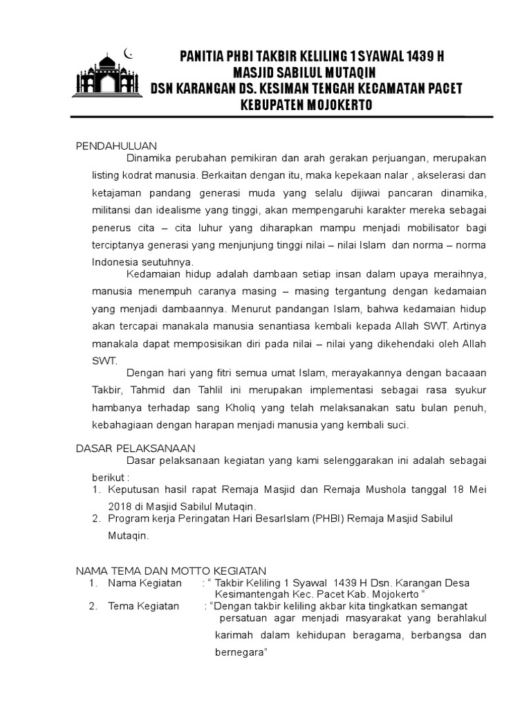 contoh proposal kegiatan pawai obor keliling malam takbir hari raya - PDF Free Download