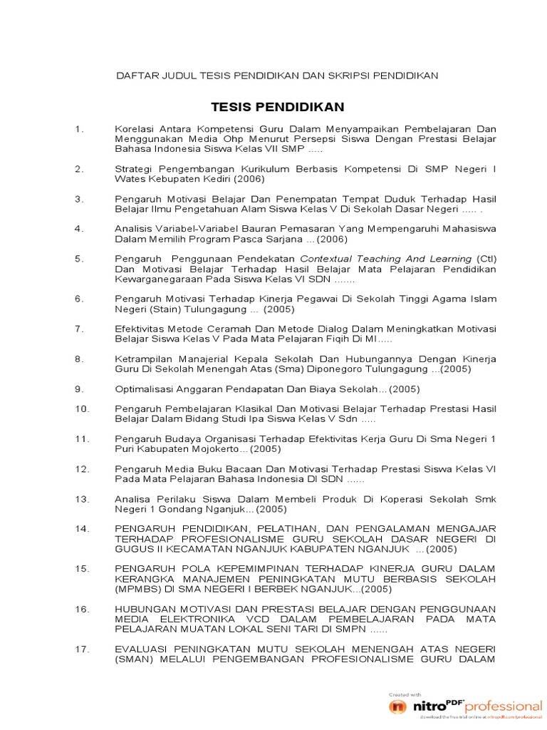 Contoh Tesis Pendidikan dan Tesis Manajemen Pendidikan
