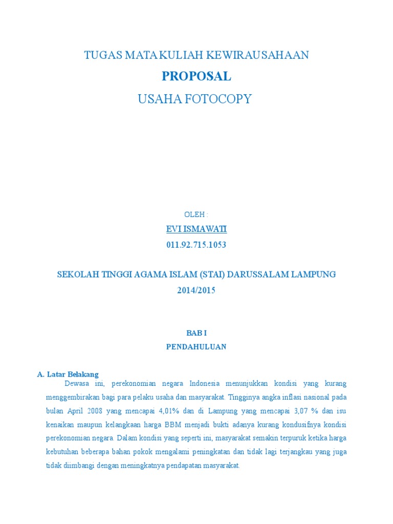 Contoh Proposal Kewirausahaan Yang Baik dan Benar | TEORI PENDIDIKAN