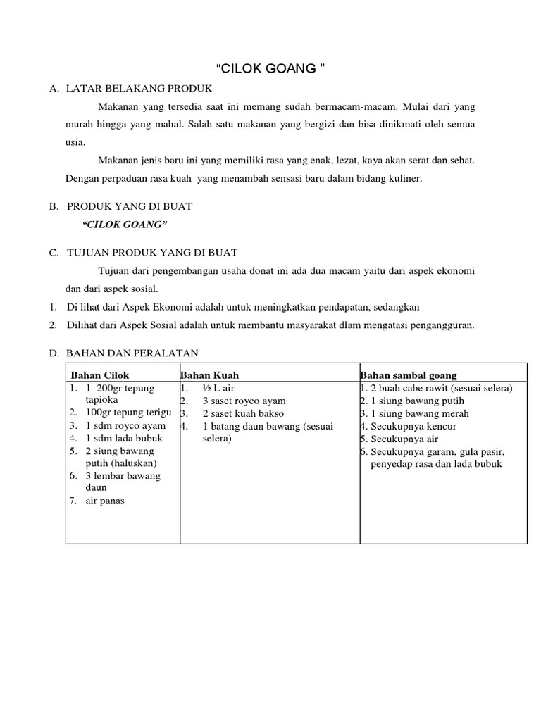 DOC) Makalah Proposal " USAHA CILOK ISI " TUGAS PKR DAN KEWIRAUSAHAAN SMK AL-AMIN 2014 | mataram city - Academia.edu