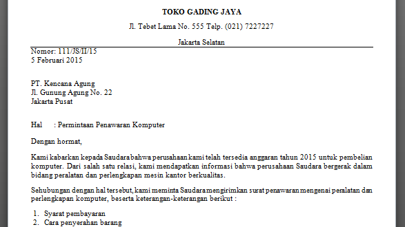 Contoh Surat Penawaran Barang Bentuk Setengah Lurus