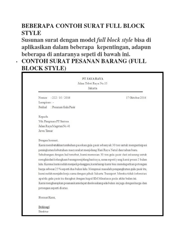 Contoh Surat Semi Block Style Dan Full Block Style - BlogGadoGado
