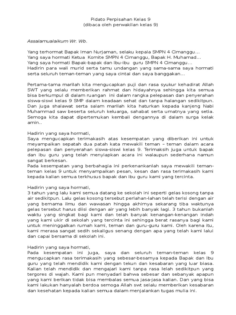 DOC) Contoh Pidato Perpisahan KELAS 9 | JayKummarhe Zazg …