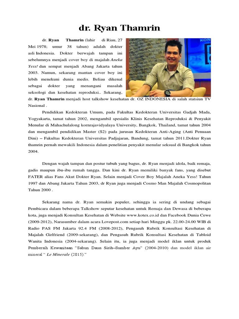 Inilah Sederet Rekam Jejak dr Ryan Thamrin - Halaman all - Bangka Pos