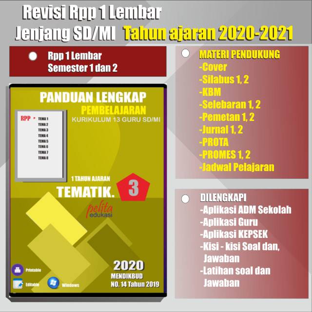 RPP K13 KELAS 3 TEMATIK 1 LEMBAR TERBARU | Shopee Indonesia
