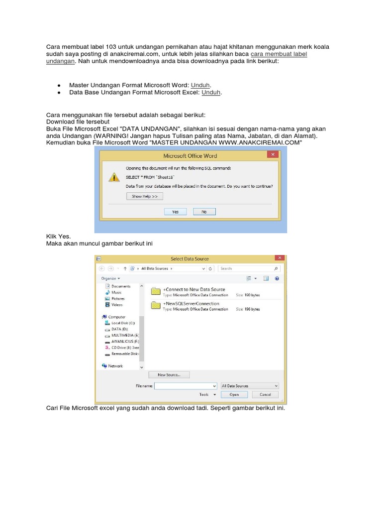 300 Rumus Excel: Download Label Undangan Siap Cetak Versi Mail Merge Model Ukuran Koala 103