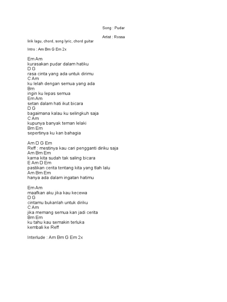 Kunci Gitar Chord Lagu Pudar Rossa, Kurasakan Pudar Dalam Hatiku, Rasa Cinta yang Ada Untuk Dirimu - Tribun Sumsel
