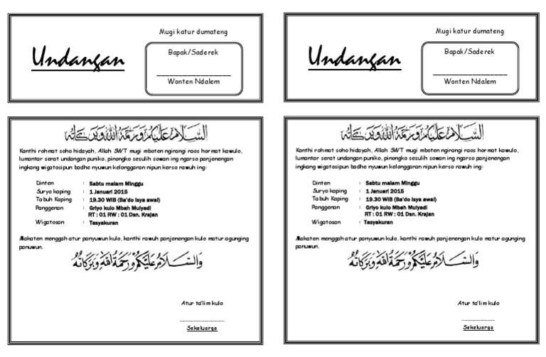 kumpulan undangan tahlil format doc | Undangan, Contoh kartu nama, Surat