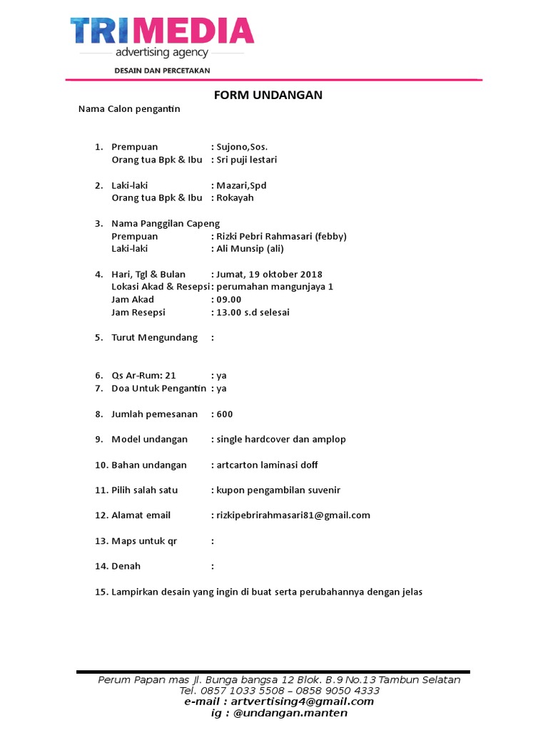 DOC) Form Order Cetak Undangan www.undanganX.com | Doni Hardiansyah - Academia.edu