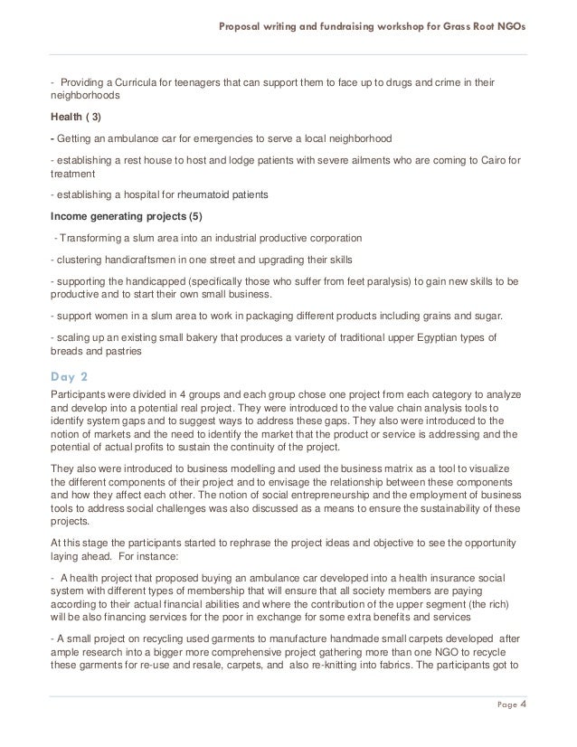 Proposal writing and fundraising workshop for Grass Root NGOs Final R…