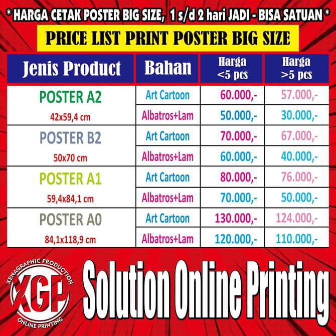 Cetak Poster ukuran A3,A2,A1,A0,B1,B2. Tersedia daftar harga …