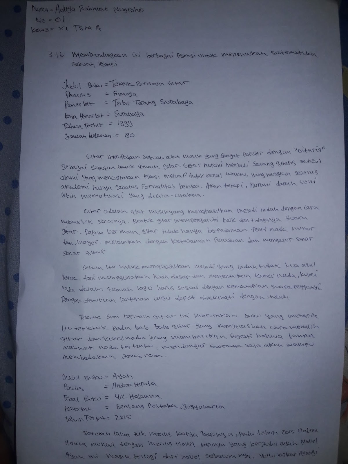 Berikut ini adalah beberapa.docx - Resensi buku 1 JUDUL BUKU Teknik Seni Bermain Gitar PENGARANG Famoya PENERBIT Terbit Terang Surabaya TAHUN TERBIT | Course Hero