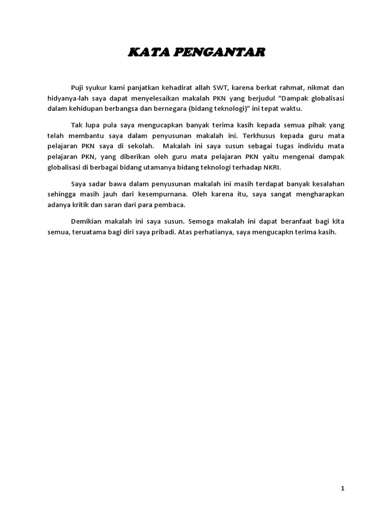 Contoh Kata Pengantar Globalisasi - GRasmi