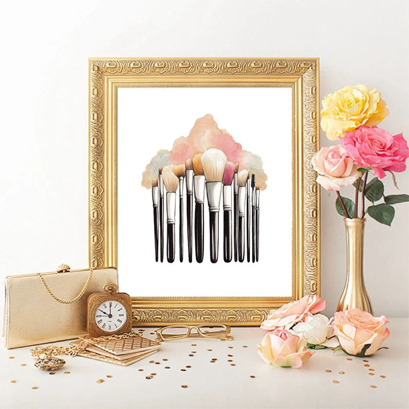 Kuas Makeup Pink Poster Cetakan Salon Kecantikan Dekorasi Cat Air …