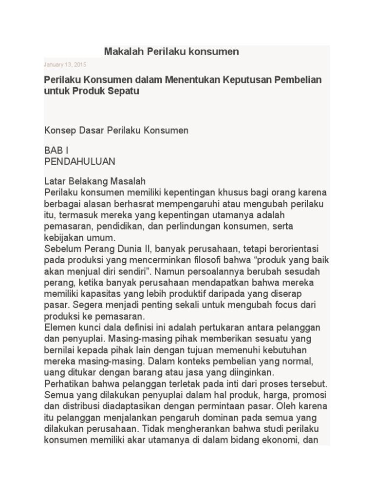 MAKALAH PERILAKU KONSUMEN FIX.docx - BAB 1 PENDAHULUAN A LATAR BELAKANG Untuk menerangkan perilaku rumah tangga konsumen dalam memilih barang dan jasa | Course Hero