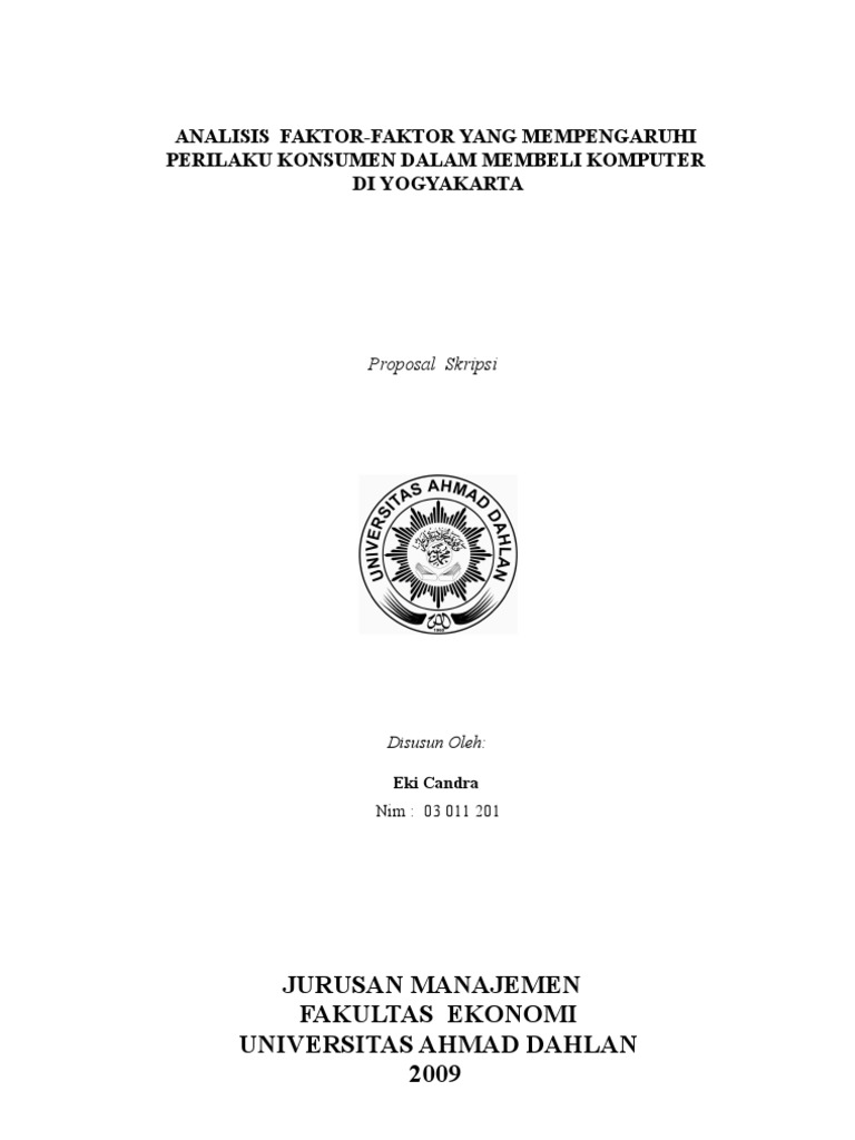 DOC) Contoh Proposal Ekonomi Contoh Proposal Skripsi Manajemen Pemasaran PROPOSAL SKRIPSI " ANALISIS FAKTOR-FAKTOR YANG MEMPENGARUHI MINAT BELI KONSUMEN PADA IKLAN FLEXY" | rofik al - Academia.edu