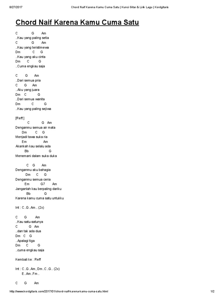Chord Naif Karena Kamu Cuma Satu _ Kunci Gitar & Lirik Lagu _ Kordgitaris