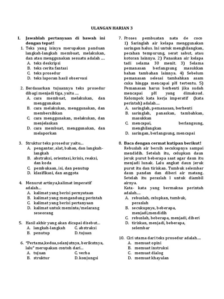 Ulangan Harian 3 Teks Prosedur