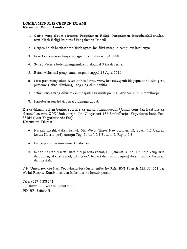 LOMBA MENULIS CERPEN ESAI RAMADHAN Berhadiah Puluhan Juta Rupiah …
