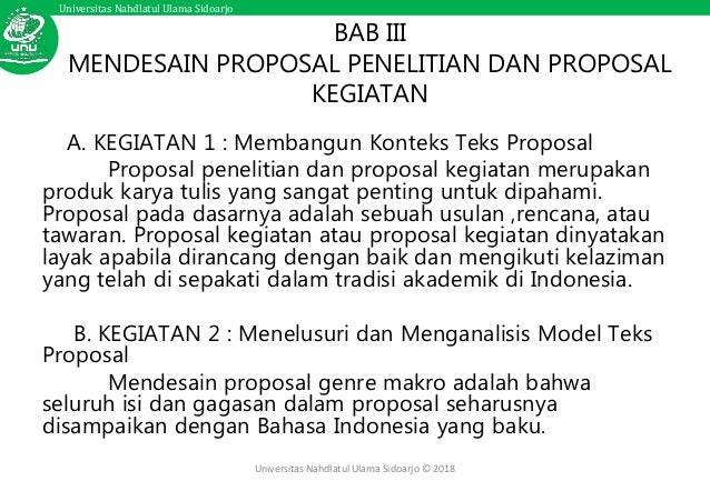 Bab Iii Mendesain Proposal Penelitian Dan Proposal Kegiatan A. Membangun Konteks Teks Proposal