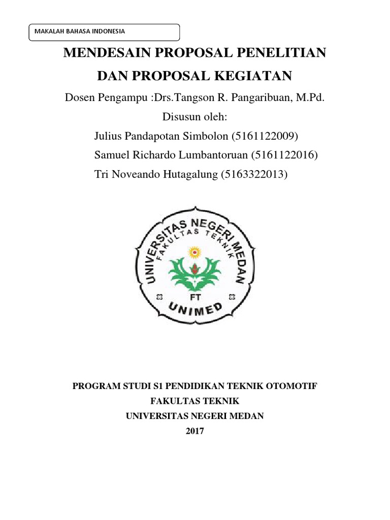 DOC) MENDESAIN PROPOSAL PENELETIAN DAN PROPOSAL KEGIATAN PROGRAM STUDI TEKNIK INDUSTRI FAKULTAS TEKNIK UNIVERSITAS PAMULANG 2018 | Febri nurhidayanti - Academia.edu