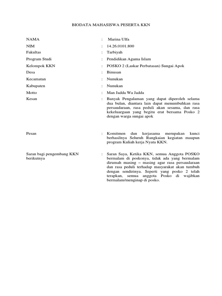 Biodata Mahasiswa Peserta Kkn