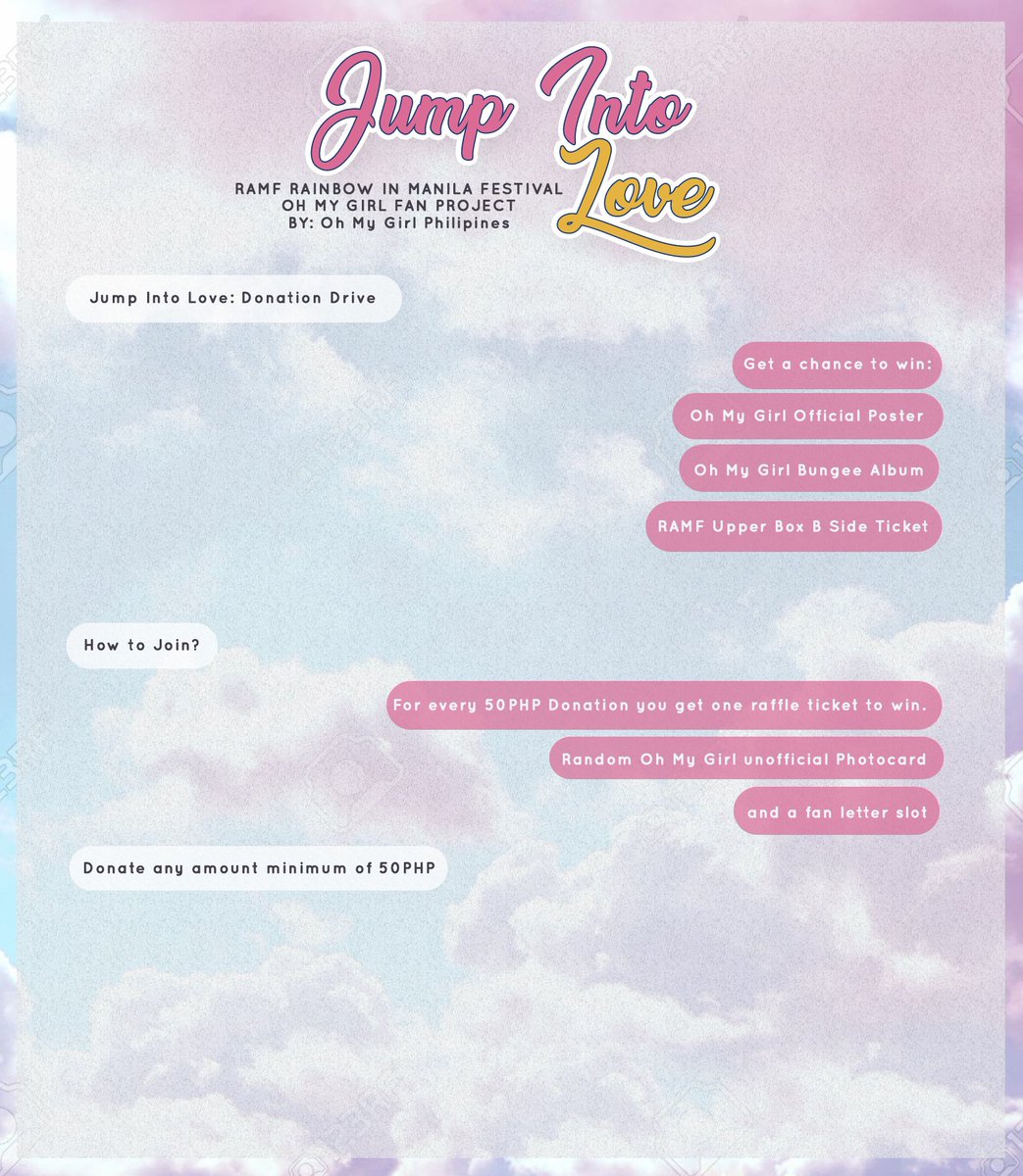 OhMyGirl Philippines on Twitter: “[] Oh My Girl Philippines officially open ‘JUMP INTO LOVE’ Fan Project and Donation Drive Donate and have a chance to win an official poster, album and RAMF