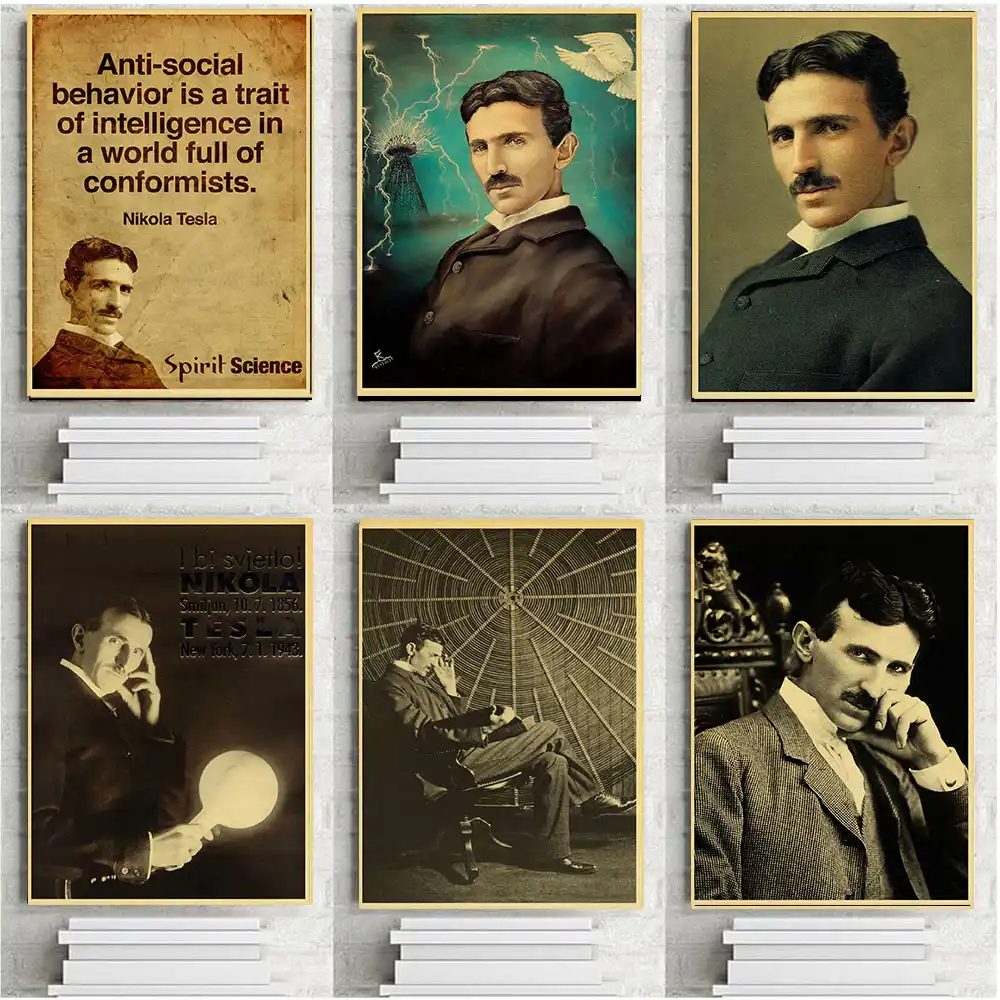 Dunia Penemu Terkenal Nikola Tesla Retro Kraft Kertas Poster Kantor Cafe Dekoratif lukisan dekorasi Rumah hadiah wallpaper|Wall Stickers| - AliExpress