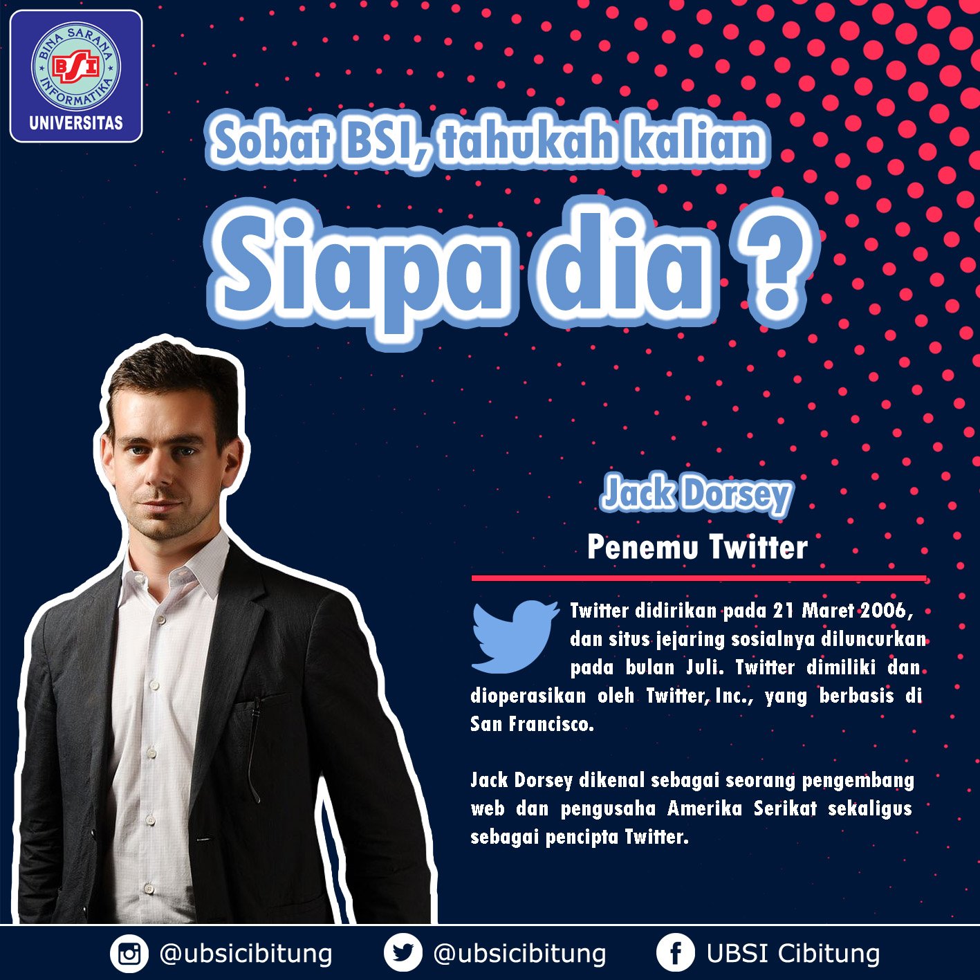 UBSI Kampus Cibitung a Twitter: “Selamat pagi sobat BSI. Suka main aplikasi Twitter? . Yuk kenalan sama penemu Twitter dan tokoh-tokoh penemu sosial media lainnya di sosmed @ubsicibitung. . . #ubsicibitung #kuliahbsiaja…