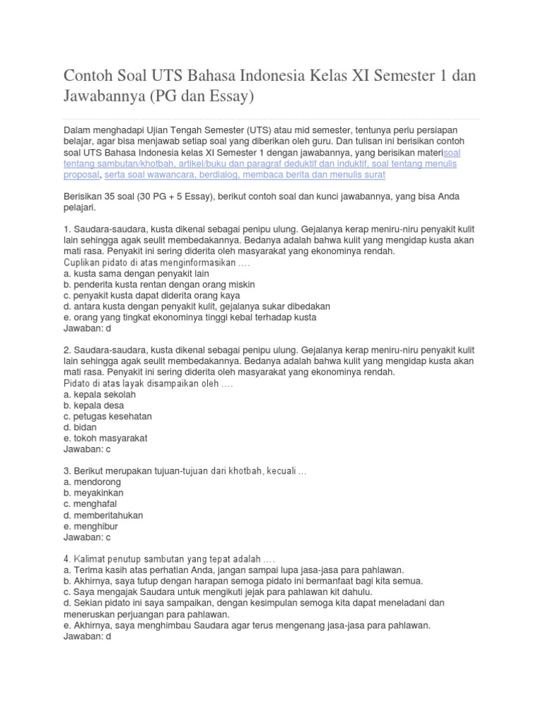 Soal Essay Bahasa Indonesia Kelas 11 Sma/Ma Dan Kunci Jawabnya Terbaru