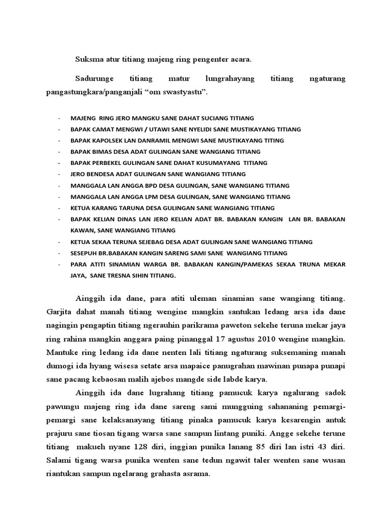 pidato ketua seka truna dalam basa Bali