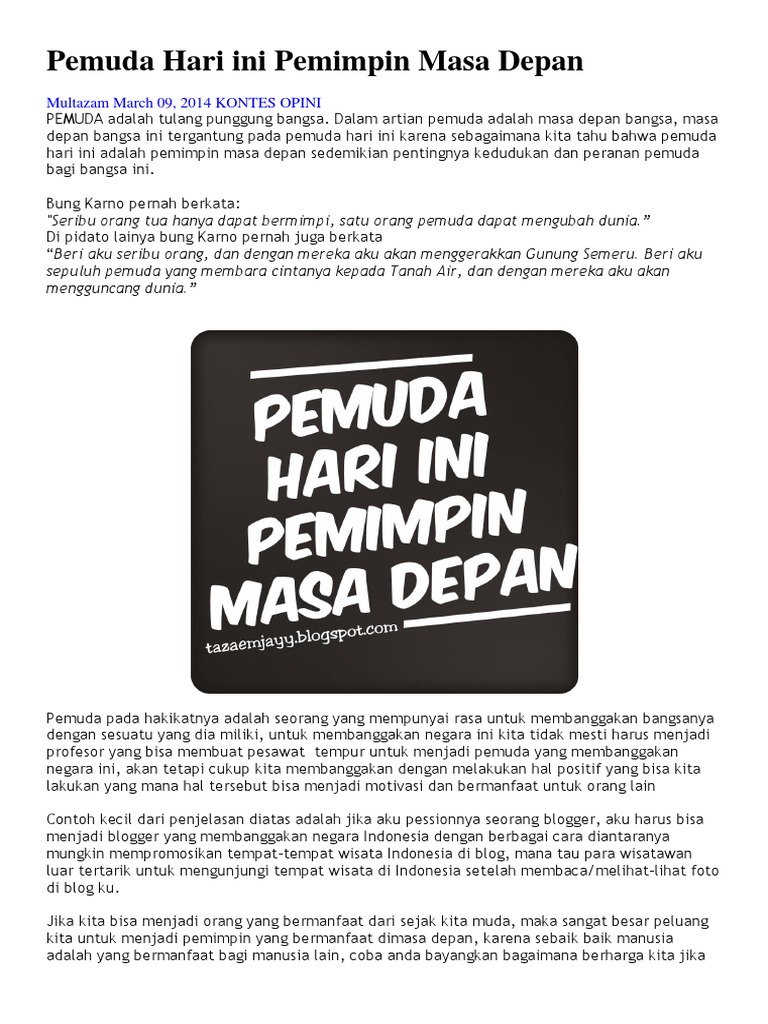 Pemuda Hari ini Pemimpin Masa Depan - Muhammad Multazam - TAZAMBLOG