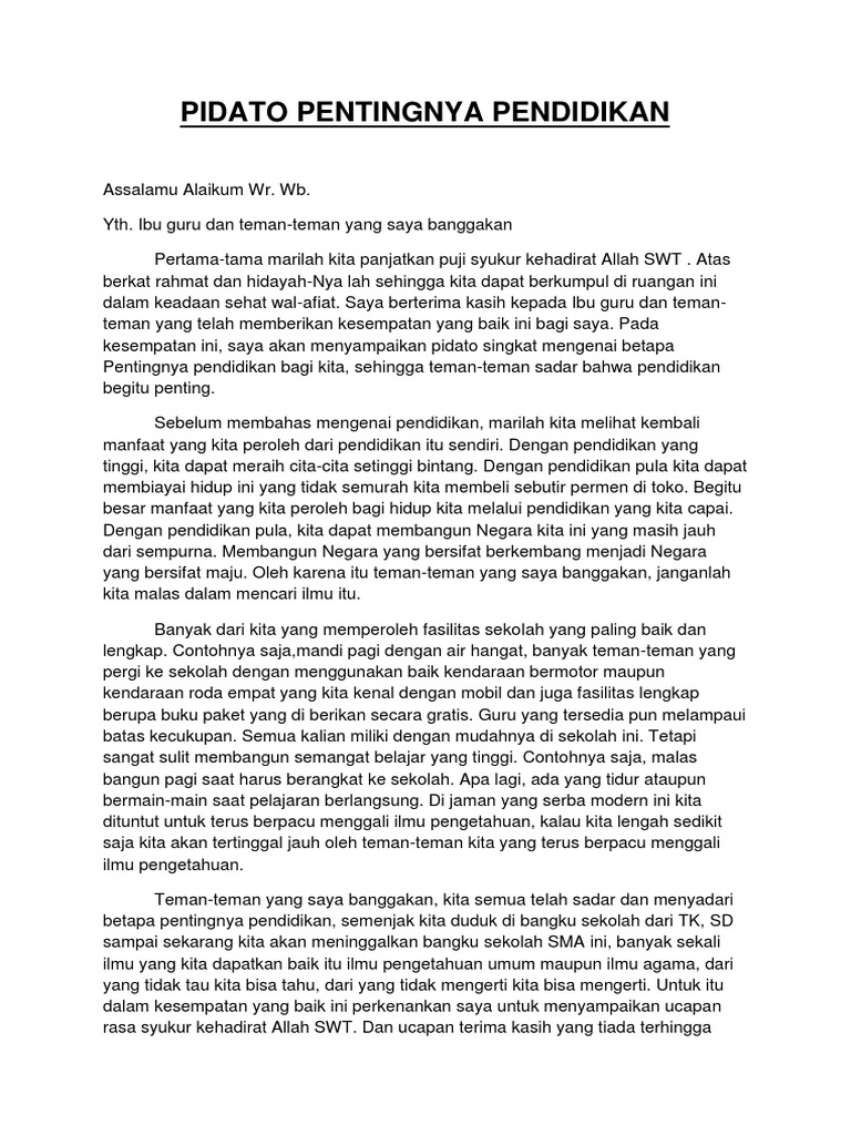 DOC) Contoh Teks Pidato Naskah Singkat Tema Pendidikan | Kang Taqwim - Academia.edu
