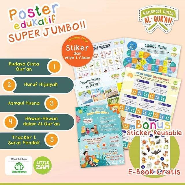 Poster jumbo edukatif little zam - seri generasi cinta Al Quran / poster hijaiyah / asmaul husna | Shopee Indonesia