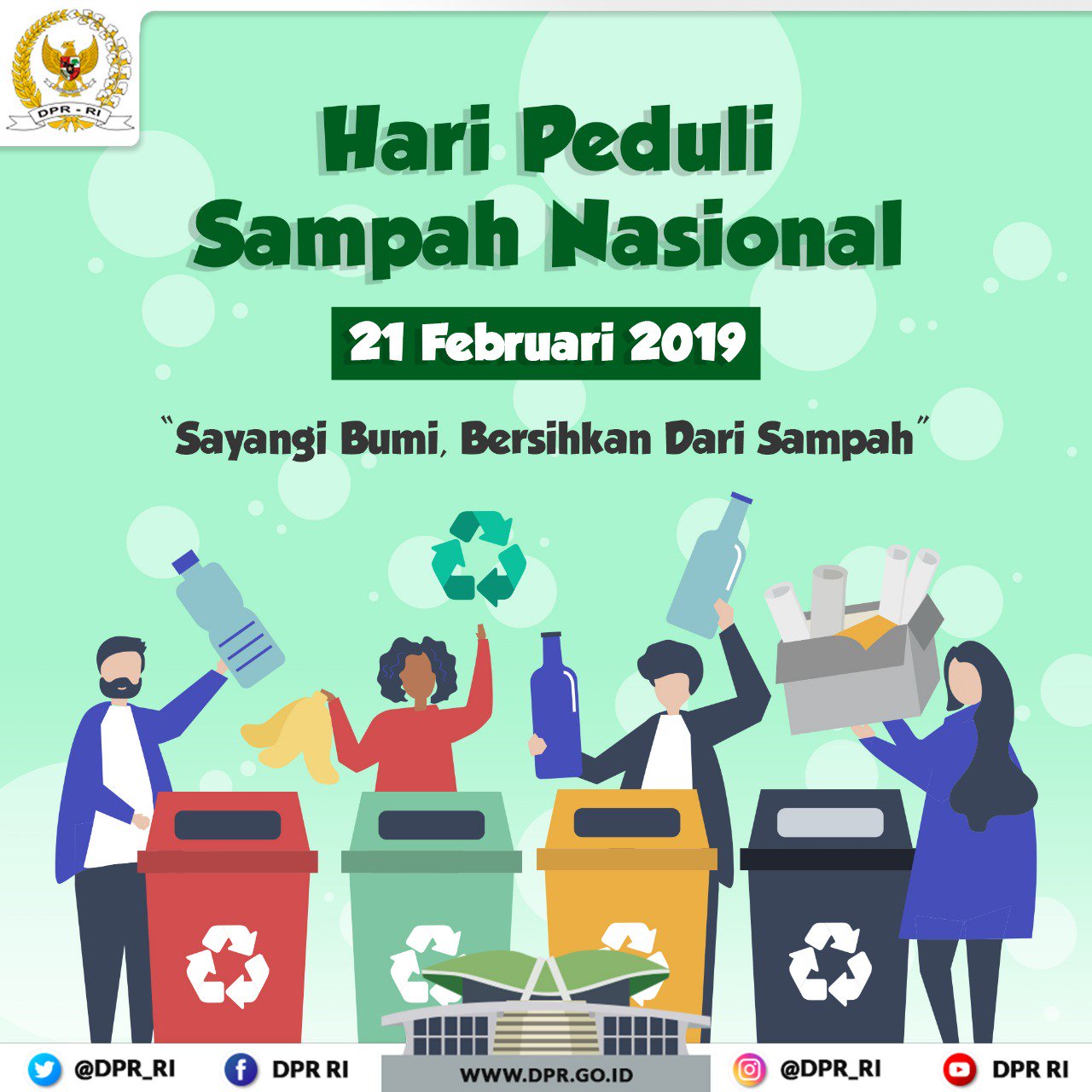 DPR RI on Twitter: “Selamat Memperingati Hari Peduli Sampah Nasional, 21 Februari 2019. “Sayangi Bumi, Bersihkan Dari Sampah” #HariPeduliSampahNasional… https://t.co/H0EfRpuZR9”